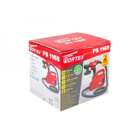 Краскораспылитель электрический WORTEX PS 1165 в кор. 650 Вт, 1100 мл/мин, 0.9 л бак (2.5 мм сопло, 60 DIN)