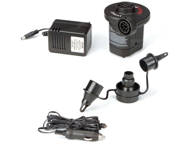 Электрический насос Intex предназначен для накачивания и сдувания различных надувных изделий без каких-либо усилий. Работает как от сети (220 В), так и от бортовой сети автомобиля (12 В), что делает насос особенно удобным для путешествий.