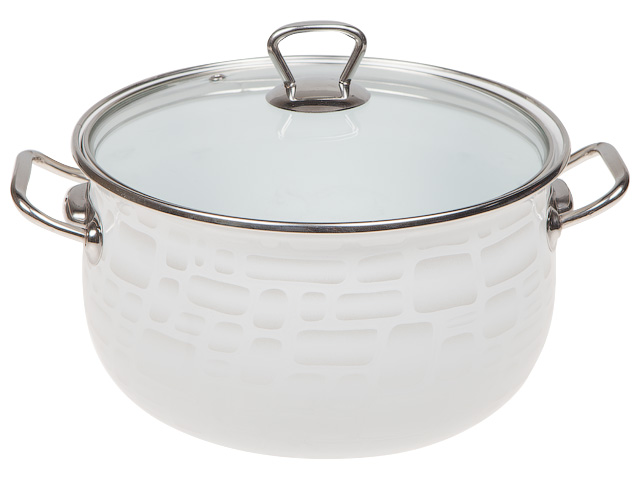 Кастрюля имеет рельефную объемную деколь, сферической формы, в индивидуальной упаковке.
