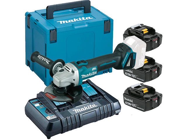Комплектация: Шлифовальный круг с вдавленной центральной частью Зажимная гайка Боковая рукоятка Зарядное устройство DC18RD Аккумулятор BL1850B 5 Ач (3 шт.) Кейс MakPak