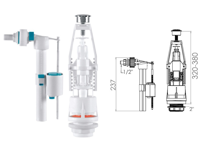 Арматура для смывного бачка с клапаном боковой подачи, NOVA