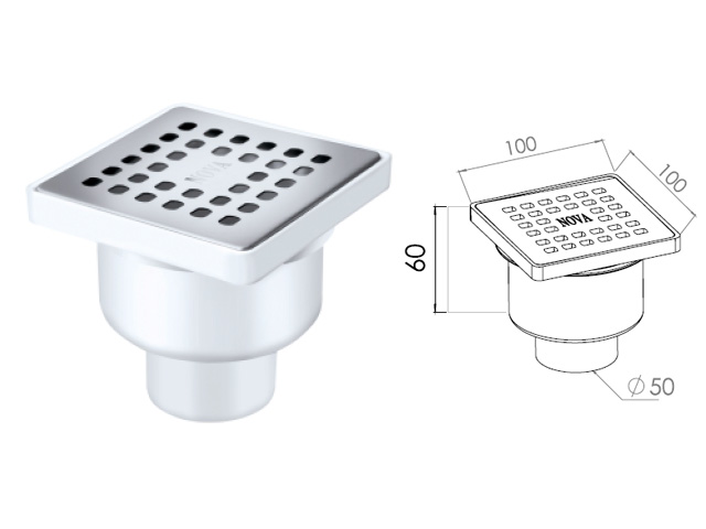 Как получить "Сливной трап вертикальный D 50, с сухим затвором, решетка нерж. 100х100 мм, NOVA":