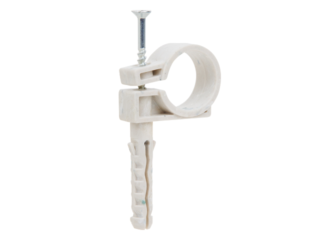 Крепеж для труб и кабеля - это комбинированное изделие, которое состоит из пластикового кольца и дюбеля с шурупом для быстрого монтажа.