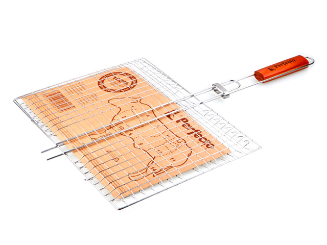 Решетка-гриль, 400x300 мм, нержавеющая сталь, деревянная ручка, PERFECTO LINEA (Супер цена!)