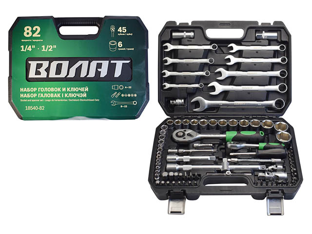 Набор головок и ключей 82пр. ВОЛАТ (1/4", 1/2", 6 граней)