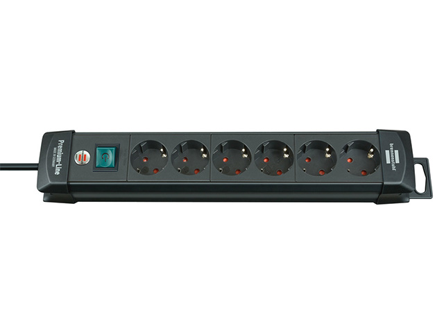 Удлинитель 3м (6 роз., 3.3кВт, с/з, выкл., ПВС) чер. Premium Line (провод 3х1,5мм2; сила тока 16А; с/з - с заземляющим контактом) (BRENNENSTUHL)