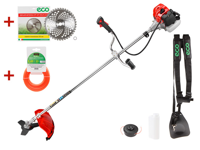 Мотокоса ECO GTP-145N АКЦИЯ + Нож 40T ECO + Леска ф2.4ммх15м квадратн. STARTUL (1.45 кВт, 2.0 л.с., 43.0 см3, нож 255х25.4 мм, лёгкий запуск, 3 зуб.,