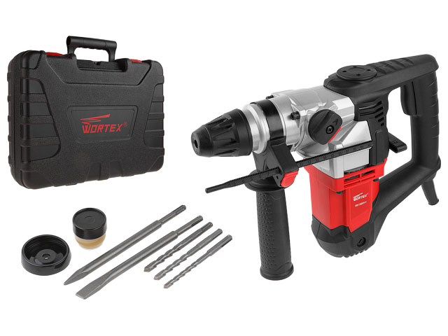 Перфоратор WORTEX RH 3231-1 в чем. + (2 зубила, 3 сверла) 1000 Вт, 4.8 Дж, 32 мм, 2 режима, SDS-plus (вес 4.5 кг)