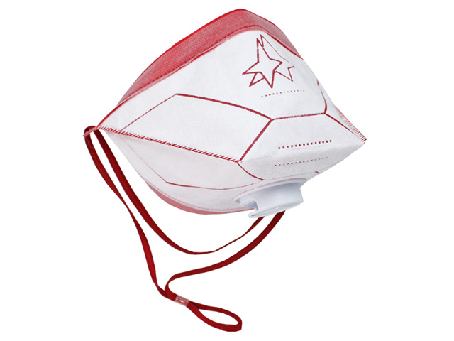 Складной фильтрующий респиратор FFP3 с регулируемыми лентами оголовья. Клапан выдоха направлен вниз, он понижает уровень влажности и температуры в подмасочном пространстве.