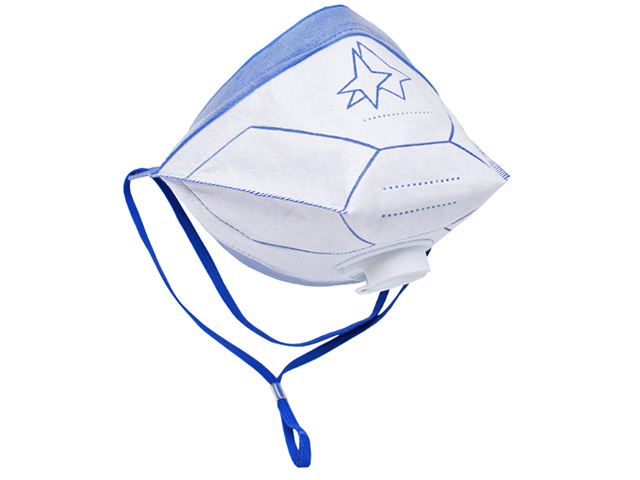 Складной фильтрующий респиратор FFP2 с регулируемыми лентами оголовья. Клапан выдоха направлен вниз, он понижает уровень влажности и температуры в подмасочном пространстве.