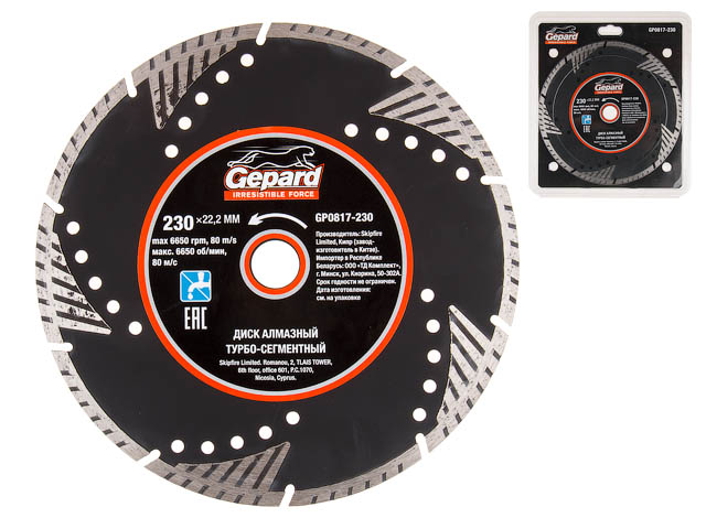 Вы можете выбрать и купить товар Алмазный круг 230х22 мм турбо-сегментный GEPARD (сухая резка, TURBO-сегментный) из каталога " алмазные круги ф 230 мм" на TopBaza.by по низким ценам.Как оплатить покупку "Алмазный круг 230х22 мм турбо-сегментный GEPARD (сухая резка, TURBO-сегментный)":