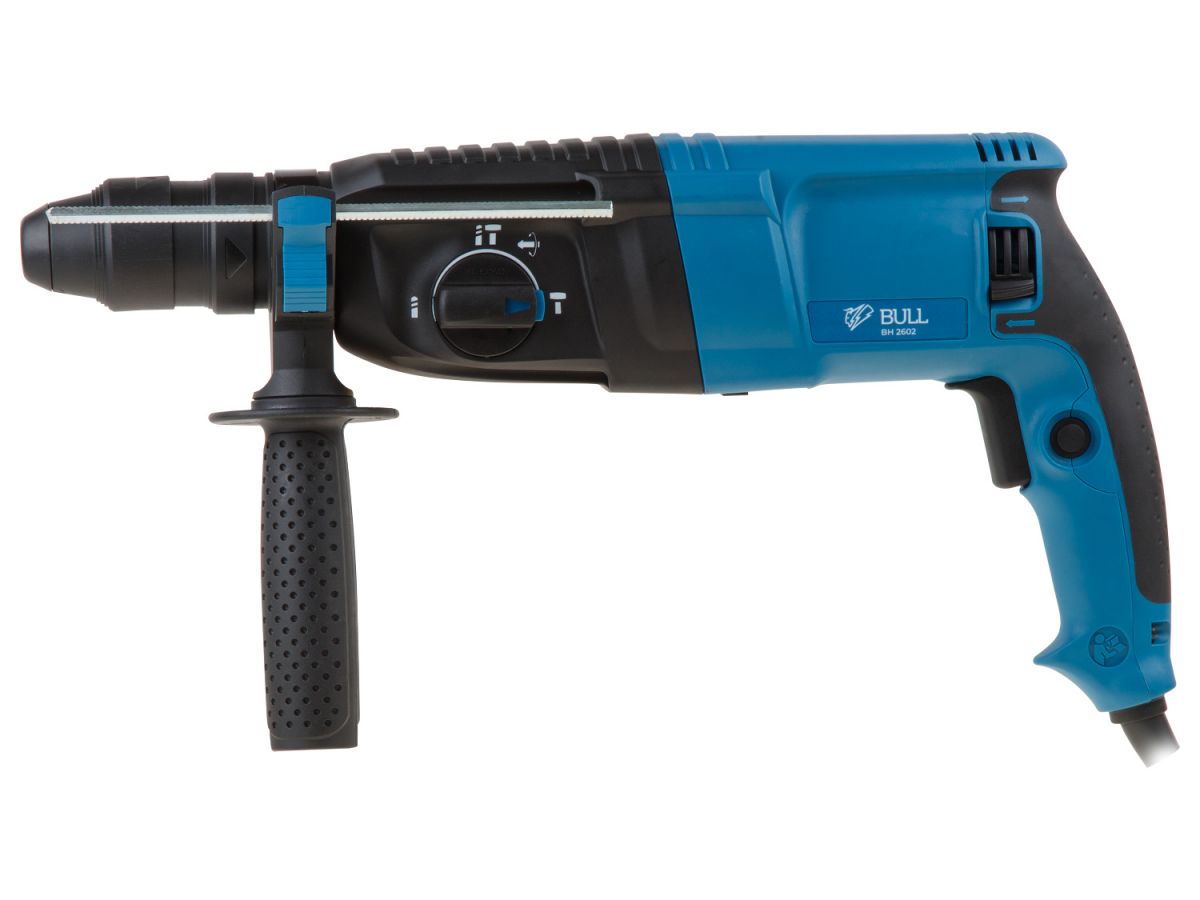 Перфоратор BULL BH 2602 в чем. 800 Вт, 3.0 Дж, 4 реж. + 2 зубила, 3 сверла, БЗП в комплекте (800 Вт, 3.0 Дж, 4 реж., патрон SDS-plus, БЗП в комплекте,
