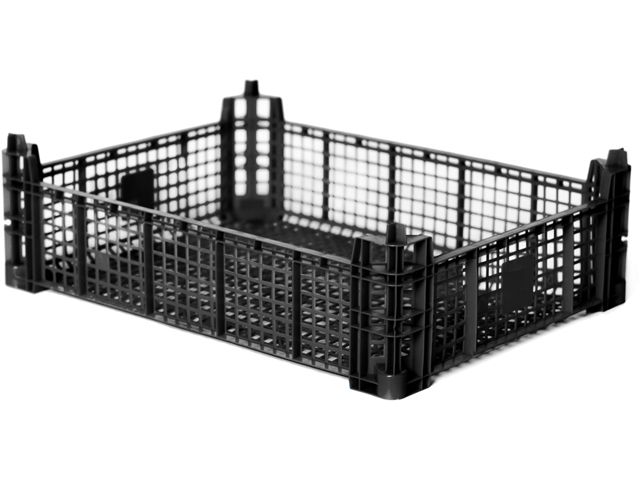 Шпильки на рёбрах позволяют ставить ящики один на один, образуя устойчивую конструкцию. Углы ящика усилены, что позволяет увеличить срок эксплуатации