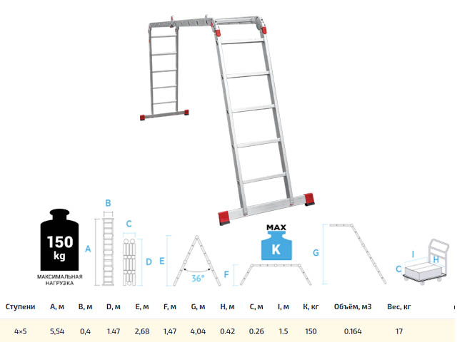 Как получить "Лестница алюм. многофункц. трансформер 4х5 ступ., шир. 400 мм, 17кг NV3320 Новая высота (Без настила. Максимальная нагрузка - 150 кг) (Новая Высота)":