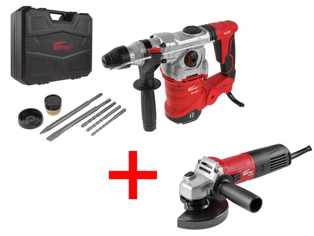 Перфоратор WORTEX RH 3239 F в чем. + (2 зубила, 3 сверла) + АКЦИЯ! (+ WORTEX AG 1209 со скидкой!)