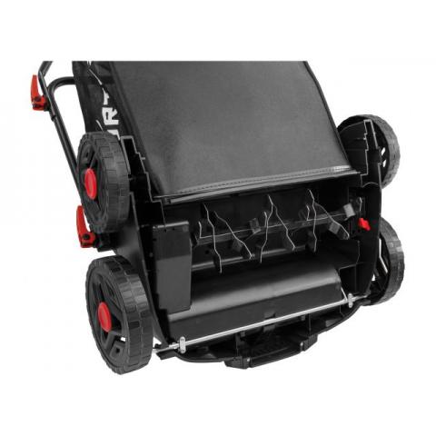 Наличие широкого диапазона регулировок высоты аэрации и скарификации позволит выбрать оптимальную высоту обработки почвы. Аэратор-скарификатор обладает высокой маневренностью. Наличие складной ручки позволит сократить место, необходимое для его хранения. Эксплуатацию значительно облегчает вместительный травосборник на 45 л, а также легкая замена рабочего вала.