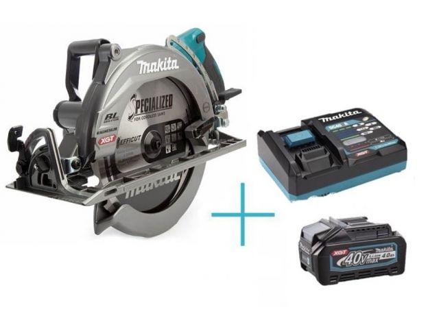 Аккум. циркулярная пила MAKITA RS 001 GZ в кор. + АКЦИЯ (1 аккумулятор, зарядное) (40.0 В, 1 акк. 4.0 А/ч, 185х30 мм,)