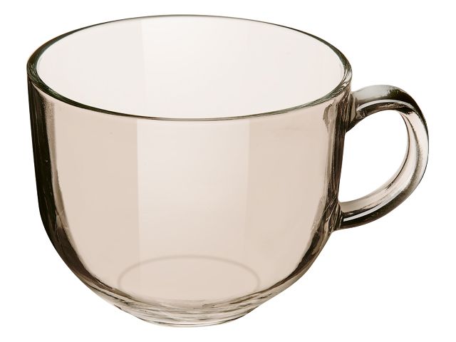 Вместительная стеклянная кружка подходит для супов и бульонов.