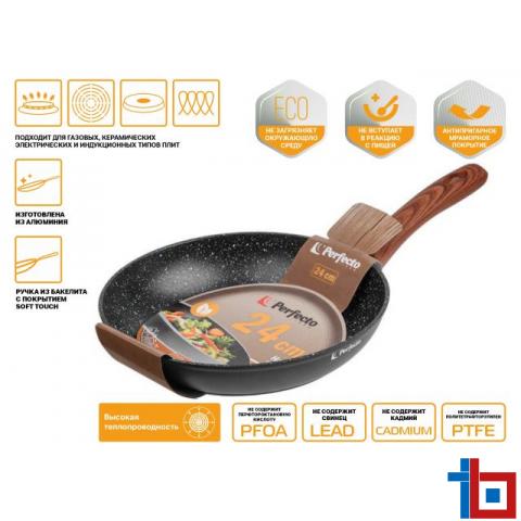Бакелитовая ручка сковороды имеет покрытие Soft touch, что позволяет избежать ее нагревания и обеспечивает комфортное использование.