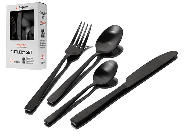 Набор столовых приборов, 24 шт., черный матовый, серия Majestic, PERFECTO LINEA