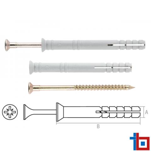 Особенности: для установки необходимо предварительно просверлить отверстие. Прочность крепежа достигается расклиниванием дюбеля в отверстии гвоздем в момент удара молотком. С помощью крестообразного шлица на головке гвоздя можно легко ослабить или усилить крепеж, демонтировать его. Дюбель-гвоздь с потайным бортиком устанавливается <заподлицо>, т.е. его шляпка утапливается, благодаря чему возможно производить крепежные работы без последующего выравнивания поверхности.