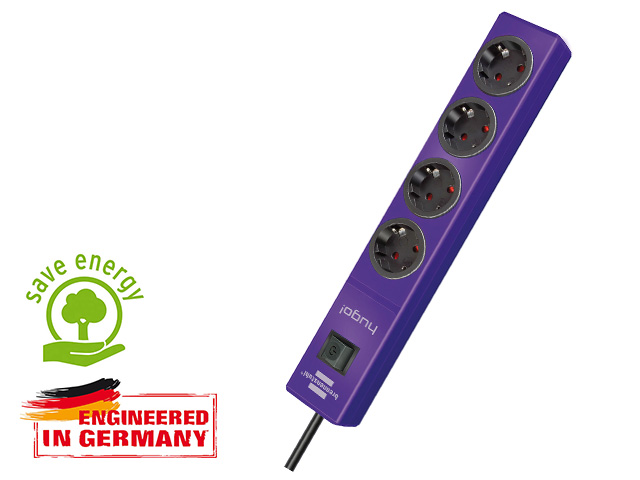 Удлинитель 2м (4 роз., 3.3кВт, с/з, выкл., ПВС) фиолетовый Brennenstuhl Hugo! (провод 3х1,5мм2; сила тока 16А; с/з - с заземляющим контактом)