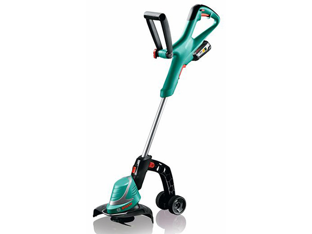 Дополнительные колеса с фиксацией для точного ведения инструмента упрощают стрижку по краю газона